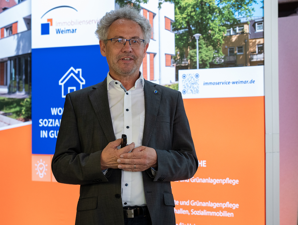 Über die Jahre hat sich der Immobilienservice Weimar den Anforderungen der Weimarer Wohnstätte angepasst. Durch die sukzessive Übernahme der Schulen und Sporthallen von der Stadt Weimar, musste sich zum Beispiel auch das Dienstleistungsspektrum und die Belegschaft erweitern. Darüber hinaus gibt es immer neue gesetzliche Vorgaben, die es umzusetzen gilt, oder auch Bedürfnisse der Mieter, die man als zukunftsorientiertes Unternehmen bedienen muss. Hier wäre der Glasfaserausbau zu nennen oder die Fernauslesung der Heizkostenverteiler. Inzwischen gibt es mehrere verschiedene Servicebereiche, die sich um den Bestand der Weimarer Wohnstätte kümmern. „In Zeiten von Handwerkermangel ist es ein strategischer Vorteil, viele der notwendigen Arbeiten mit einer Tochterfirma abdecken zu können.“, betont Udo Carstens in seiner Doppelfunktion als Chef beider Unternehmen. Wohlwissend, dass der generelle Trend auch vor dem Immobilienservice nicht Halt macht. Von den ersten Mitarbeitern sind zwar heute nur noch wenige für das Unternehmen tätig, aber der Altersdurchschnitt steigt dennoch. Erfreulich ist daher, dass der Immobilienservice Weimar seit 2021 auch selbst in verschiedenen Handwerksberufen erfolgreich ausbildet. | Fotos: Johannes Krey